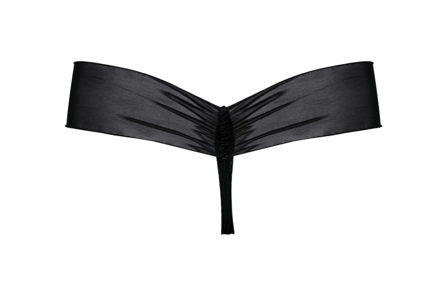 En bas, un micro-string ultra flatteur comprend une large bande de voile qui souligne votre taille galbée. Si vous prévoyiez une soirée intime, cet ensemble deux pièces très coquin est fait pour vous !