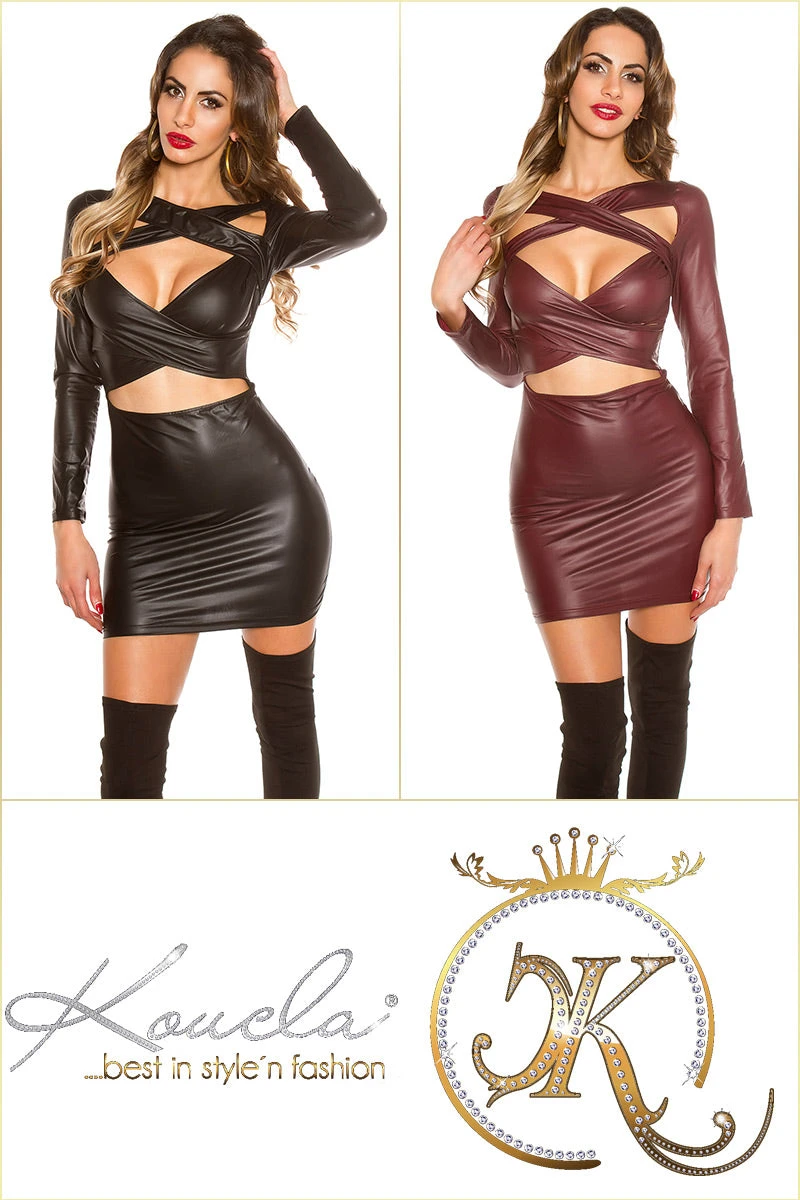 Dans un coloris bordeaux et une matière effet mouillée, cette robe est à la fois originale et sexy.